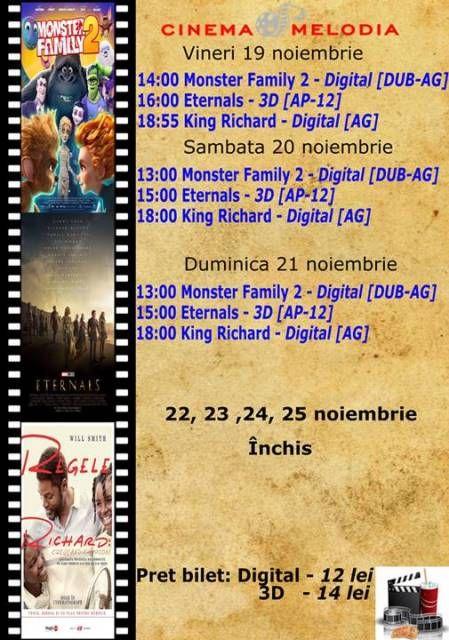 Filme de acţiune, animaţie, actiune dar şi thriller, este oferta cu care Cinematograful Melodia vine în această săptămână. Biletele pot fi rezervate la numărul de telefon: 0729000094.