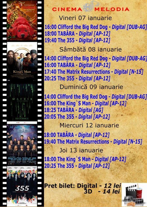Filme de acţiune, animaţie, actiune dar şi thriller, este oferta cu care Cinematograful Melodia vine în această săptămână. Biletele pot fi rezervate la numărul de telefon: 0729000094.