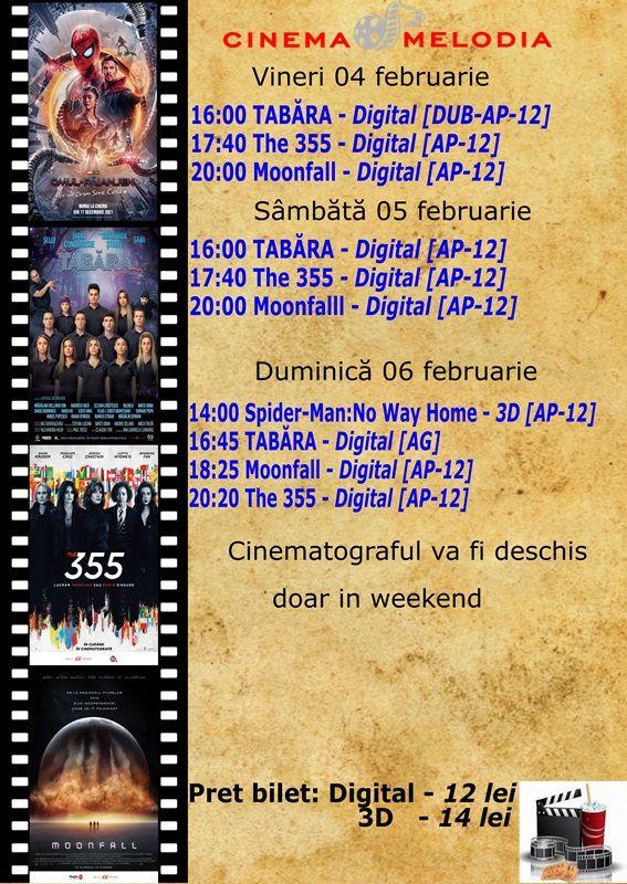 Filme de acţiune, animaţie, actiune dar şi thriller, este oferta cu care Cinematograful Melodia vine în această săptămână. Biletele pot fi rezervate la numărul de telefon: 0729000094.