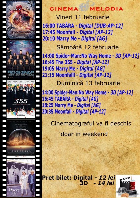 Filme de acţiune, animaţie, actiune dar şi thriller, este oferta cu care Cinematograful Melodia vine în această săptămână. Biletele pot fi rezervate la numărul de telefon: 0729000094.