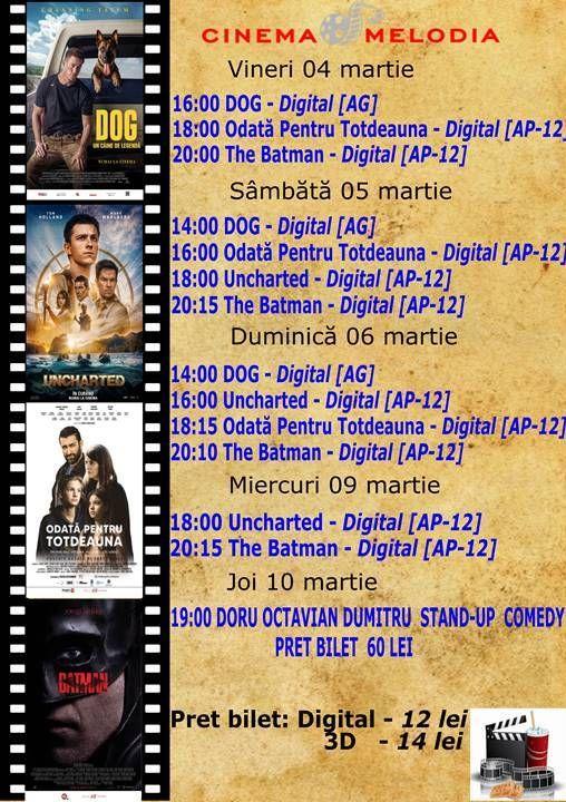 Filme de acţiune, animaţie, actiune dar şi thriller, este oferta cu care Cinematograful Melodia vine în această săptămână. Biletele pot fi rezervate la numărul de telefon: 0729000094.