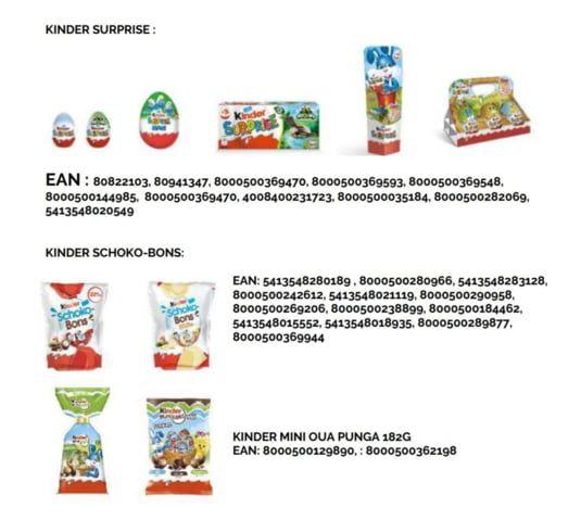 Auchan a anunțat retragerea de pe piață a mai multor produse Kinder, în urma suspiciunii de contaminare cu Salmonella.