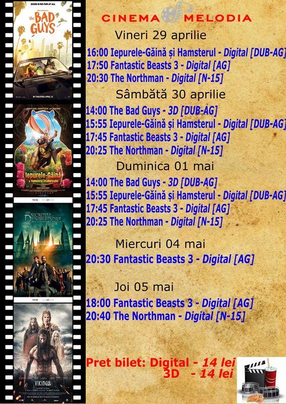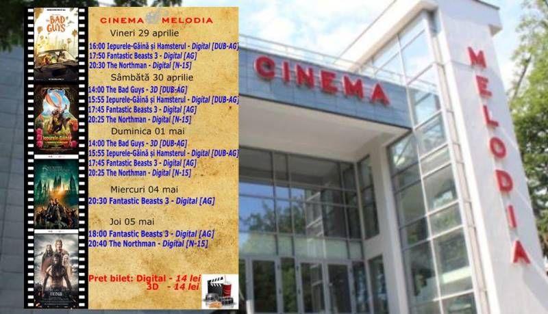 Filme de acţiune, animaţie, actiune dar şi thriller, este oferta cu care Cinematograful Melodia vine în această săptămână. Biletele pot fi rezervate la numărul de telefon: 0729000094.