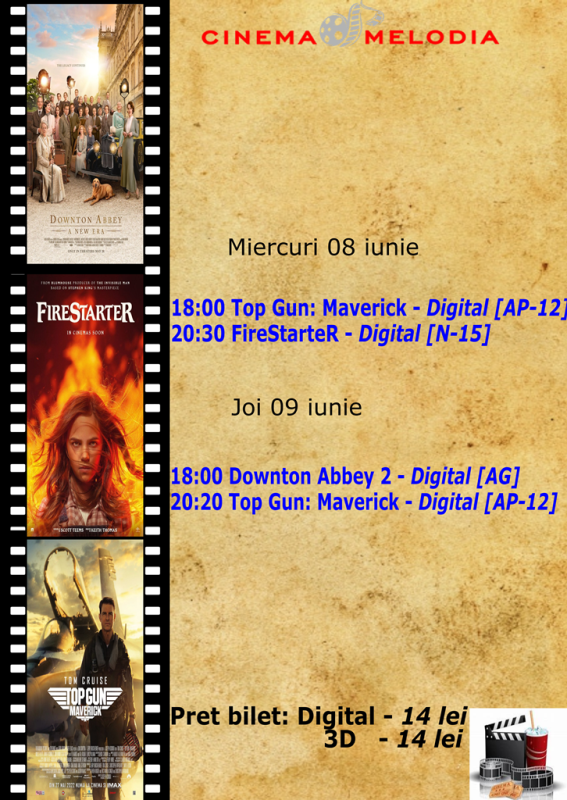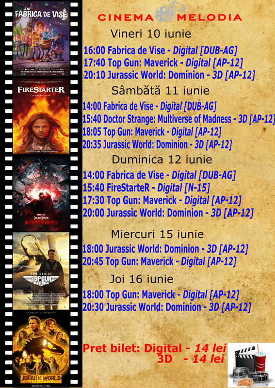 Filme de acţiune, animaţie, actiune dar şi thriller, este oferta cu care Cinematograful Melodia vine în această săptămână. Biletele pot fi rezervate la numărul de telefon: 0729000094.