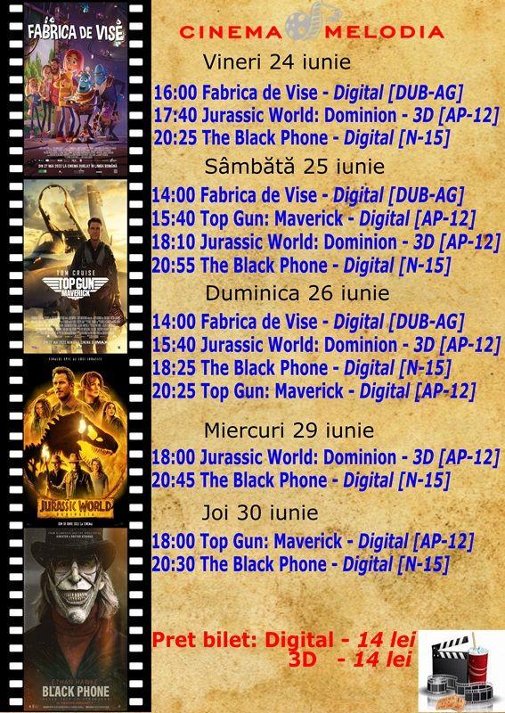 Filme de acţiune, animaţie, actiune dar şi thriller, este oferta cu care Cinematograful Melodia vine în această săptămână. Biletele pot fi rezervate la numărul de telefon: 0729000094.