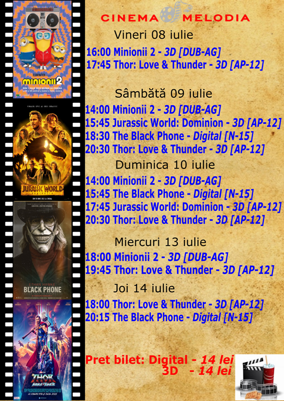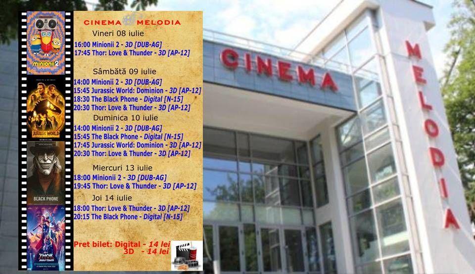 Filme de acţiune, animaţie, actiune dar şi thriller, este oferta cu care Cinematograful Melodia vine în această săptămână. Biletele pot fi rezervate la numărul de telefon: 0729000094.