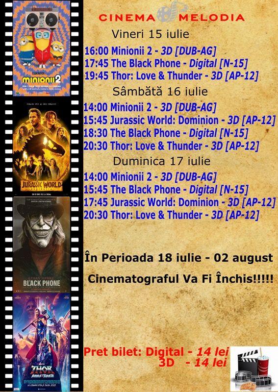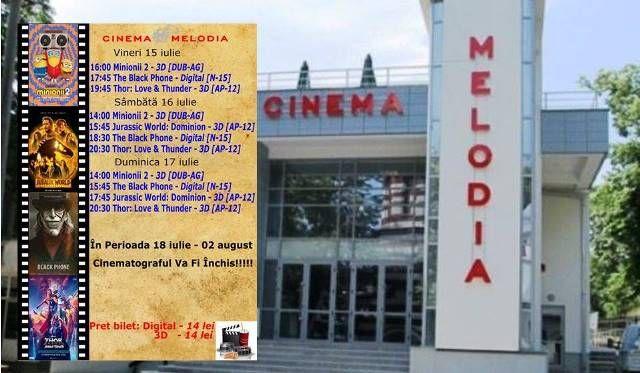 Filme de acţiune, animaţie, actiune dar şi thriller, este oferta cu care Cinematograful Melodia vine în această săptămână. Biletele pot fi rezervate la numărul de telefon: 0729000094.