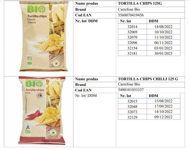 Carrefour România a retras două loturi de TORTILLA CHIPS BIO.