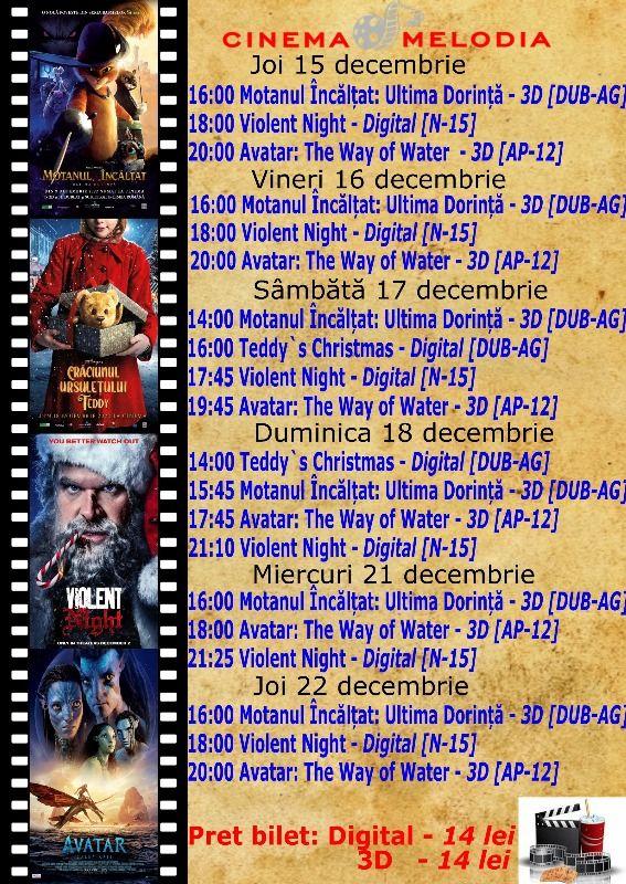 Filmele ce vor fi difuzate în perioada 15-22 decembrie sunt:
