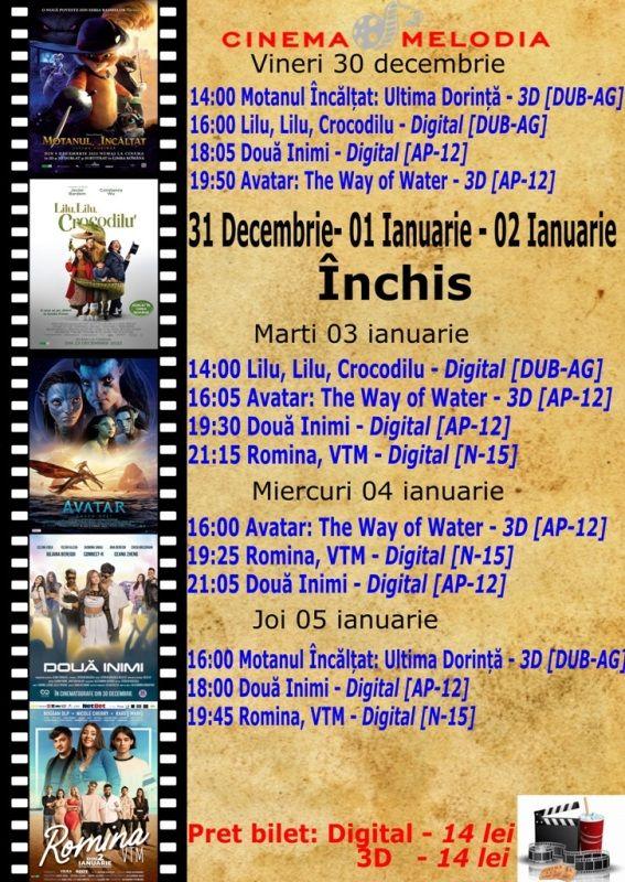 Filme de acţiune, animaţie, actiune dar şi thriller, este oferta cu care Cinematograful Melodia vine în această săptămână. Biletele pot fi rezervate la numărul de telefon: 0729000094