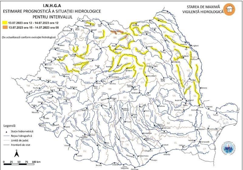 Fenomenele prognozate sunt „scurgeri importante pe versanți, torenți și pâraie, viituri rapide pe râurile mici cu posibile efecte de inundații locale și creșteri de debite și niveluri pe unele râuri din bazinele hidrografice menționate, cu posibile depășiri ale COTELOR DE APĂRARE.”