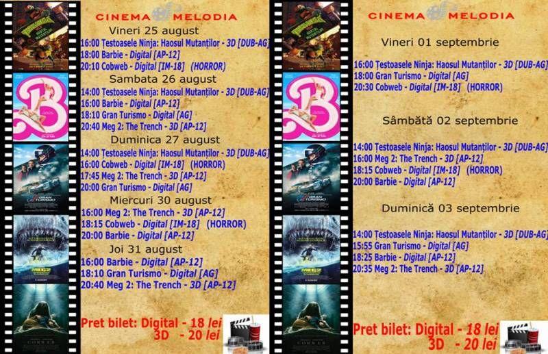 În săptămâna 25 august- 03 septembrie, Cinema „MELODIA” Dorohoi vă așteaptă la film! Vor rula: