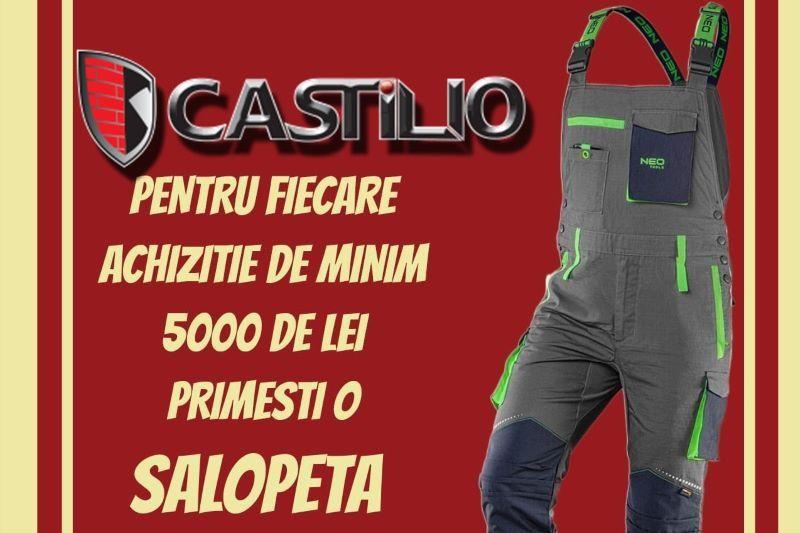Castilio își recompensează clienții fideli cu o promoție specială. La fiecare achiziție de minim 5000 de lei, cor primi o salopetă de calitate, perfectă pentru proiectele de acasă.