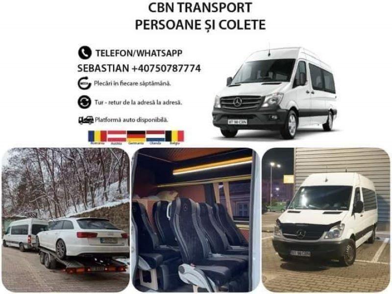 Transport persoane, colete și mașini pe platformă, săptămânal. Plecare din România în fiecare zi de JOI și retur către România în fiecare SÂMBĂTĂ.