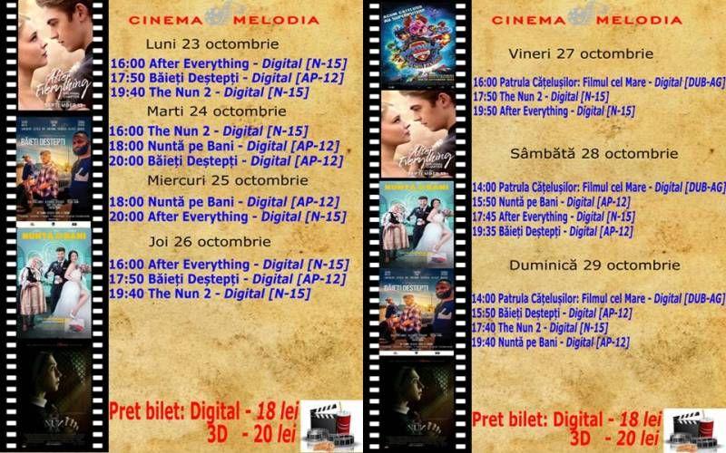 În săptămâna 23 - 29 octombrie, Cinema „MELODIA” Dorohoi vă așteaptă la film! Vor rula: