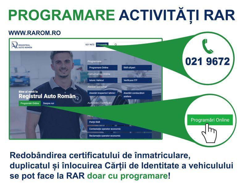 Prin urmare, cetățenii nu se vor mai putea prezenta la reprezentanțele RAR fără ca înainte să intre pe site-ul www.rarom.ro la secțiunea Programări sau să sune la numărul de call-center 021/9672 și să obțină un număr de programare.