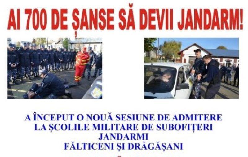 Inspectoratul de Jandarmi Judeţean Botoşani va desfăşura activităţi de recrutare a candidaţilor pentru admiterea în instituțiile de învățământ postliceal pe locurile destinate formării inițiale a cadrelor militare ale Jandarmeriei Române.