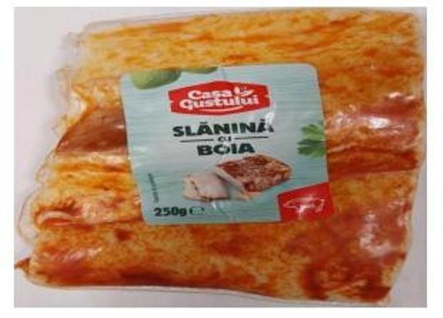 Din motive ce ţin de siguranţa consumatorilor, Rewe România retrage de la comercializare şi recheamă produsul Casa Gustului Slanină cu boia, 250G, lot 183025, termen de valabilitate 13.06.2025.