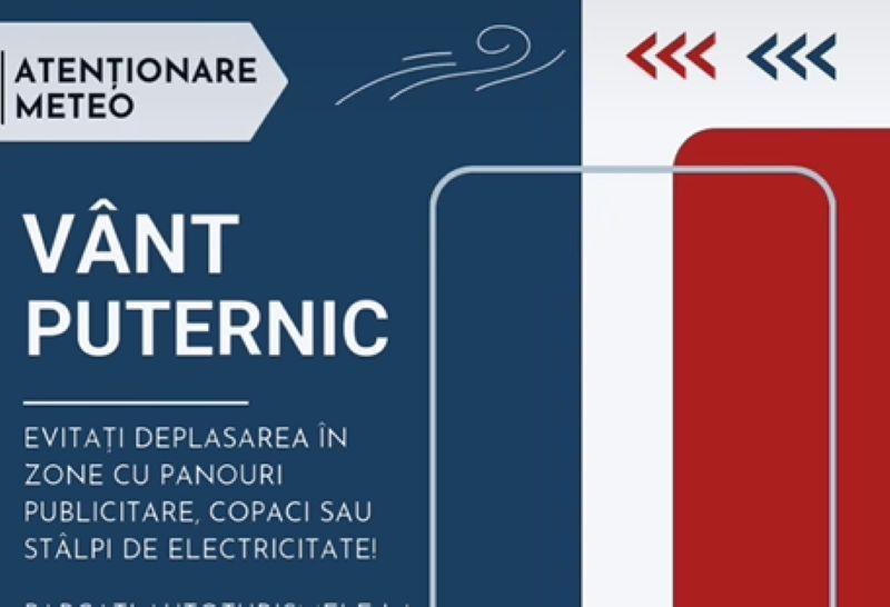 Potrivit meteorologilor, vor fi intensificări ale vântului cu viteze la rafală de 50...60 km/h și izolat 70 km/h.