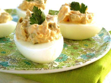 Primul gand zboara evident la ouale umplute; cele mai la-ndamana si cu o gama larga de umpluturi pentru ele. Foarte gustoase si mai ales deosebite, pentru ca le poti orna in diverse feluri, cat mai amuzante; sunt aperitivul excelent, care, alaturi de o salata de legume, poate constitui o cina delicioasa. Iata cateva retete, dar sfatul meu este sa iti lasi imaginatia sa zburde si sa le umpli cu ce-ti trece prin cap: peste, caviar, legume, maioneza, pate de ficat, etc.