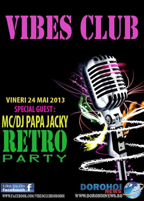 VIBES CLUB DOROHOI organizează vineri, 24 mai 2013, începând cu ora 22:00, o super petrecere intitulată: „RETRO PARTY !”.