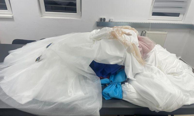 În baza profilului de risc, echipa comună de control formată din poliţişti de frontieră şi lucrători vamali a procedat la efectuarea unui control amănunţit asupra mijlocului de transport, ocazie cu care au fost descoperite 19 rochii de lux (de mireasă și de ocazie).