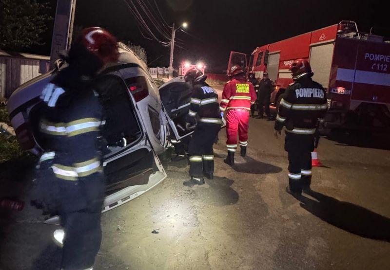 Echipajele au găsit autoturismul răsturnat pe capotă, în șanț, însă, din fericire, nu au existat persoane încarcerate sau rănite.