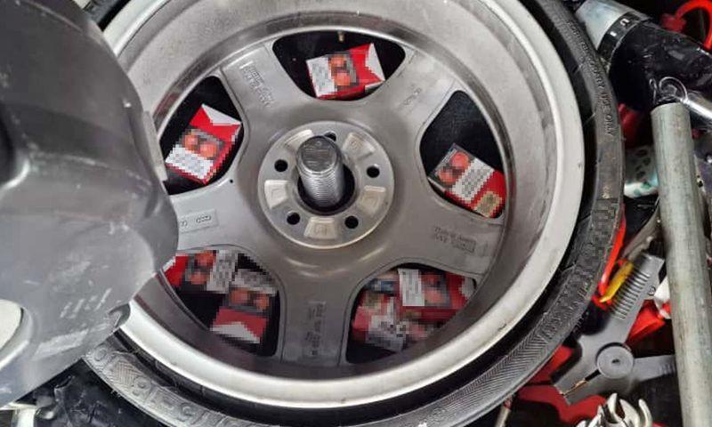 În urma controlului, în roata de rezervă a unui autoturism precum și în bagajele unuia dintre ocupanții autoturismului, respectiv într-un recipient de plastic în care se aflau mai multe bucăți de brânză sărată, polițiștii de frontieră și lucrătorii vamali au descoperit ascunse mai multe pachete cu țigarete.