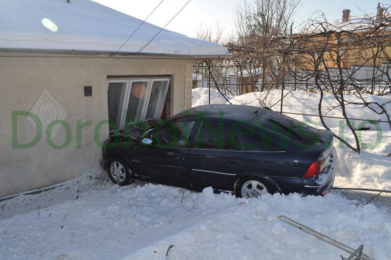 Surpriză de proporţii pentru o familie de pe strada Sf. Ioan Românul din Dorohoi, care s-a trezit în miezul nopţii cu o maşină în propria casă.