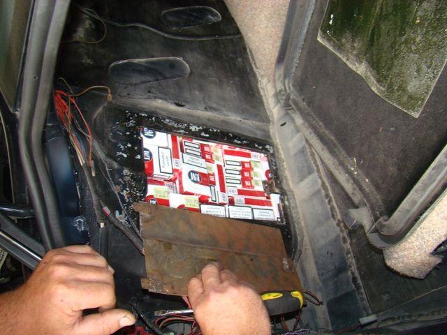 La controlul efectuat asupra autoturismului, în praguri, podul pedalier, stâlpi precum şi în spatele banchetelor din spate au fost descoperite ascunse 69.200 ţigarete marca L&M şi Red&White, cu timbru de acciză R. Moldova, în valoare de aproximativ 32.000 lei.