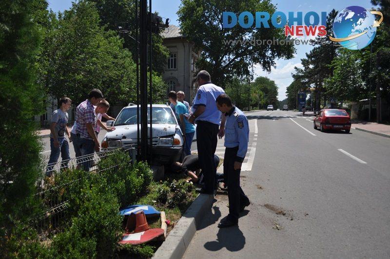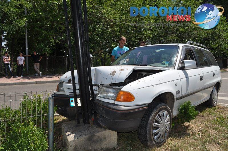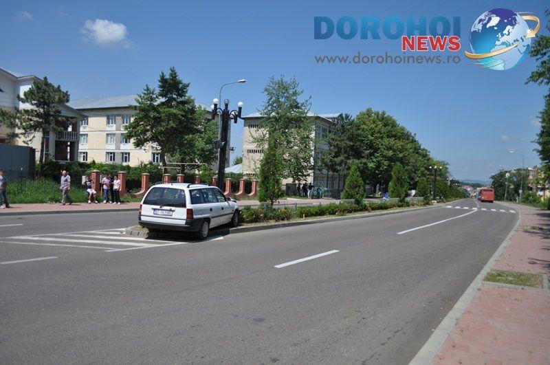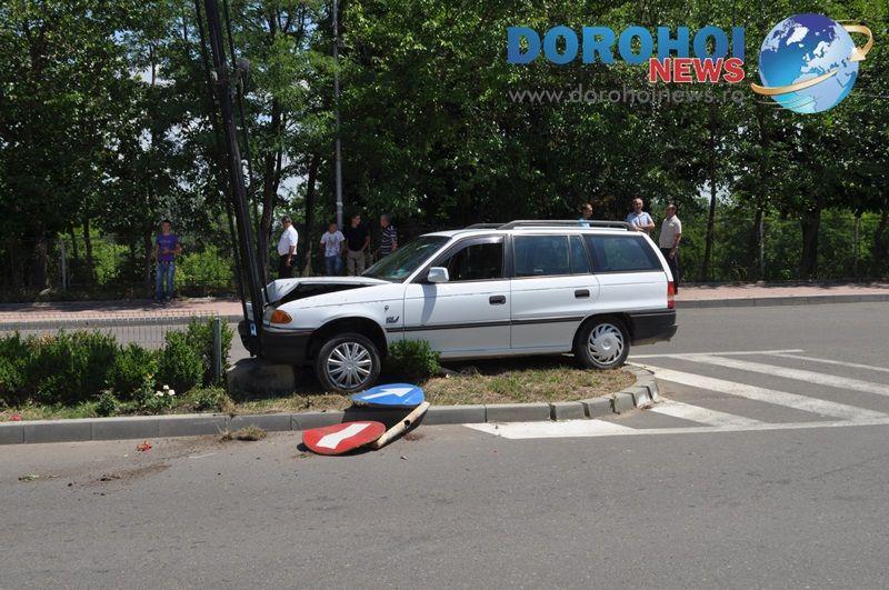 Vineri, 29 iunie, în jurul orei 12:15, la intrarea în Dorohoi, pe Bulevardul Victoriei, în apropierea Grupului Școlar „Regina Maria”, un tânar a intrat cu mașina pe scuarul care delimiteaza cele două sensuri de circulație.