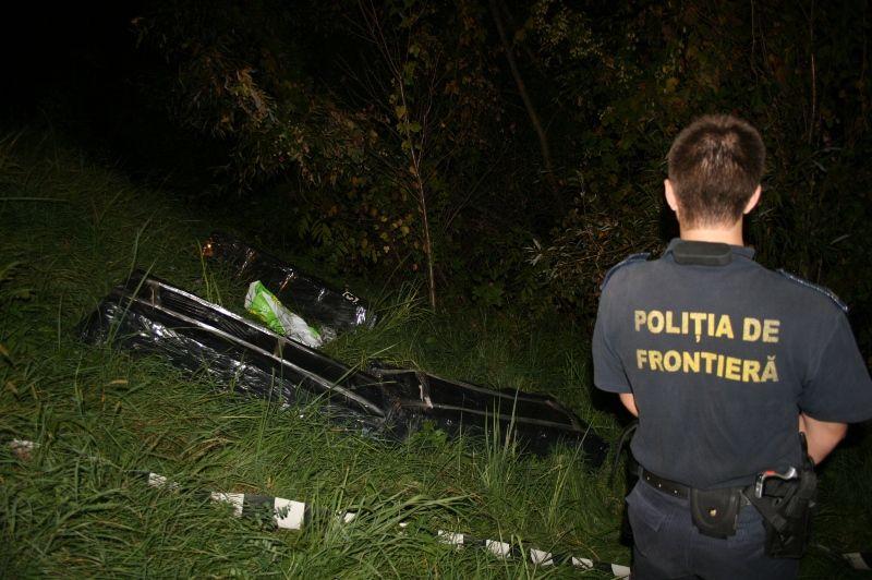 Tot marţi, 18 septembrie, operatorul de la Sistemul Optronic din cadrul Sectorului Poliţiei de Frontieră Dorohoi a observat pe teritoriul R. Ucraina, pe direcţia localităţii Sinăuţi, două persoane care transportau patru colete voluminoase, deplasându-se către teritoriul statului român.