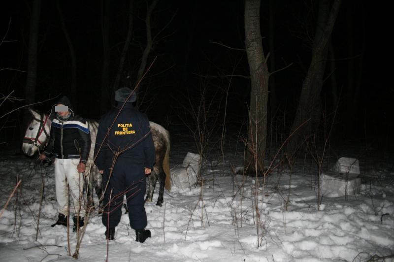 În data de 01 februarie a.c., în jurul orei 19.30, poliţiştii de frontieră din cadrul SPF Româneşti, în cooperare cu poliţişti de frontieră de la STPF Botoşani, pe timpul desfăşurării unei acţiuni specifice pe linia prevenirii şi combaterii contrabandei şi traficului ilegal cu ţigarete, pe direcţia localităţii Dămideni, în apropierea malului râului Prut, au observat două persoane care transportau, cu ajutorul a doi cai, mai multe colete voluminoase.