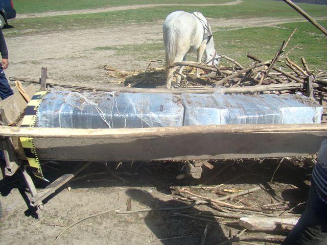 La aproximativ 2.000 de metri de frontiera de stat către interiorul teritoriului naţional, poliţiştii de frontieră au depistat un alt atelaj hipo, încărcat cu vreascuri, în care se aflau două persoane. Sub vreascuri, în căruţă, au fost descoperite două colete voluminoase învelite în folie de polietilenă de culoare neagră, în care se aflau 3585 pachete ţigări marca Plugarul cu timbru de acciză R. Moldova.