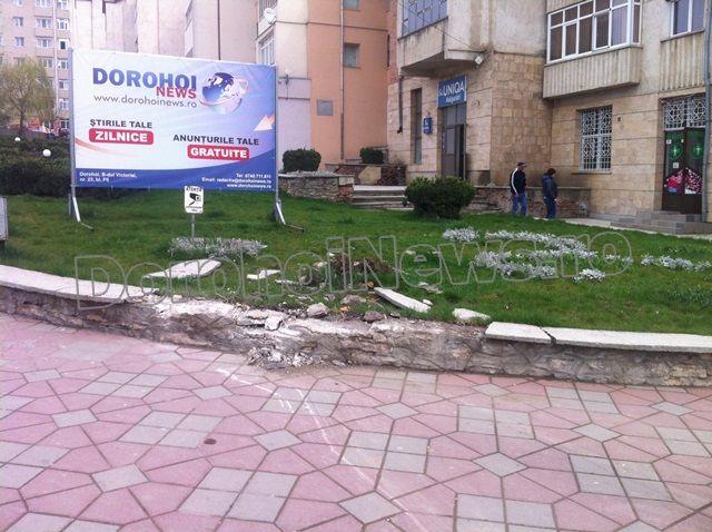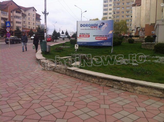 Poliţiştii Biroului Rutier - Poliţia municipiului Dorohoi s-au sesizat din oficiu în data de 9 aprilie 2014, în jurul orei 20:50, despre faptul că un bărbat de 37 ani, din municipiu, în timp ce conducea un autoturism pe Bulevardul Victoriei din localitate, a pierdut controlul asupra direcţiei de mers, împrejurare în care a pătruns pe trotuarul de pe partea dreaptă a sensului de mers.