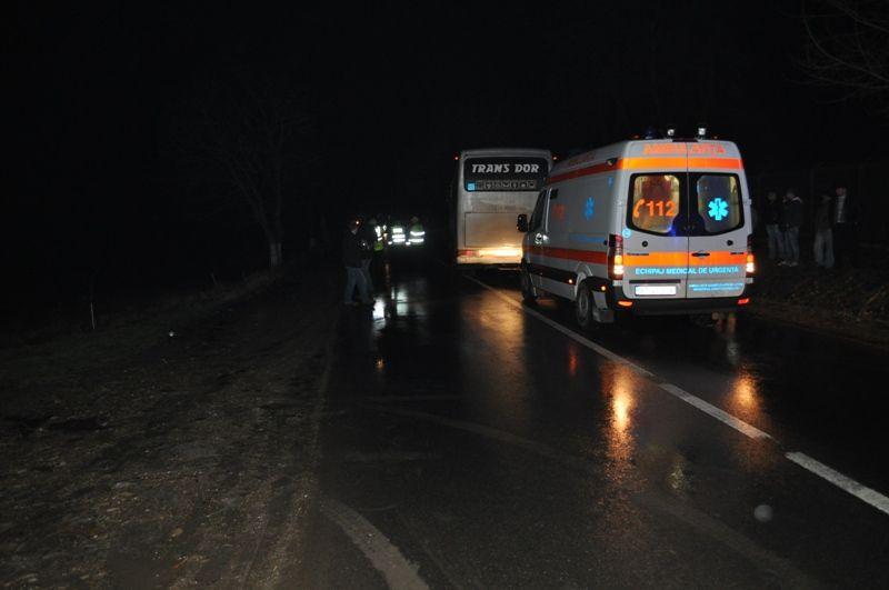 Datele preliminare arata ca Despina R. in varsta de 46 ani, domiciliata in Botosani, a fost accidentata grav de catre un autocar al firmei TransDor, care se deplasa din directia Botosani, spre Dorohoi.