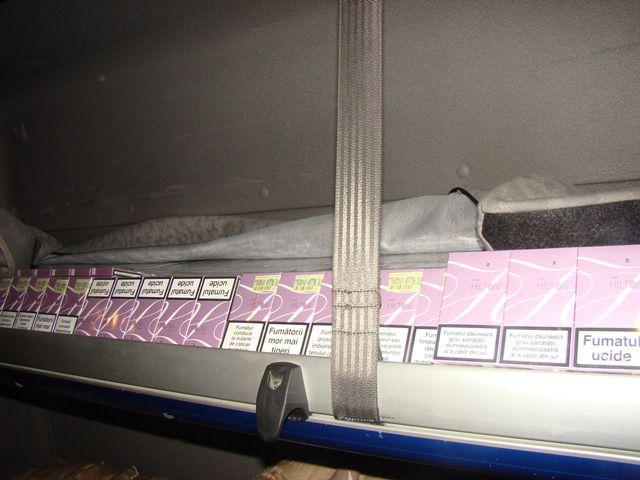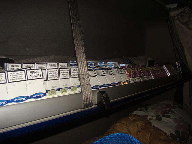 În urma controlului efectuat, au fost descoperite, ascunse şi nedeclarate, în diferite locuri din cabina autocamionului, pe patul şoferului, în spatele casetofonului şi deasupra cabinei 35.140 ţigarete, cu timbru de acciză R. Moldova.