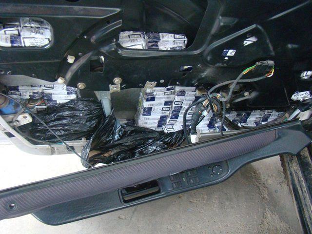 În urma controlului, echipa comună formată din poliţişti de frontieră şi inspectori vamali a descoperit, ascunse şi nedeclarate, în bordul şi portierele autoturismului, 12.200 de ţigarete marca Plugarul, de provenienţă R. Moldova.
