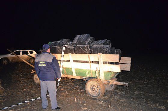 Poliţiştii de frontieră au procedat la interceptarea persoanelor, moment în care acestea au abandonat coletele şi atelajele şi au încercat să fugă, dispersându-se pe mai multe direcţii. În urma cercetărilor efectuate, în cele două atelaje au fost descoperite 109 colete, care conţineau 54.390 pachete cu ţigări, mărcile Kent, Marble, Ritm şi Ashima, în valoare de aproximativ 500.000 lei.