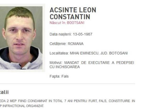 Unul din cei opt botoșăneni, Acsinte Leon Constantin din comuna Mihai Eminescu, are mandat de arestare emis pe numele său pentru fals, constituire in grup infractional organizat.