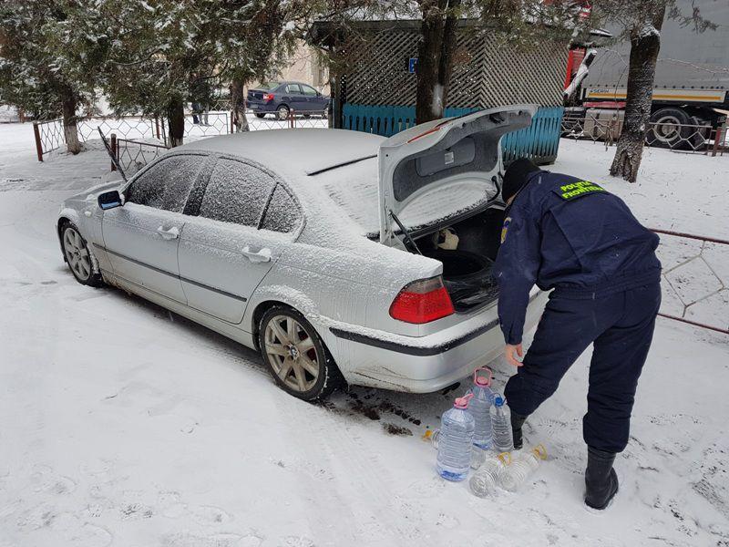 Poliţiştii de frontieră au descoperit în interiorul autoturismului mai multe recipiente din plastic ce conţineau 24 litri de lichid incolor, având miros şi proprietăţi specifice alcoolului, fără marcaje, pentru care bărbatul nu avea documente de provenienţă.