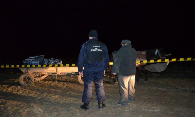 Astfel, în jurul orei 19.50, polițiștii de frontieră români au observat, cu ajutorul aparaturii de vedere pe timp de noapte, pe direcţia localităţii de frontieră Păltiniș, o persoană într-un atelaj hipo, cu care transporta două colete voluminoase.