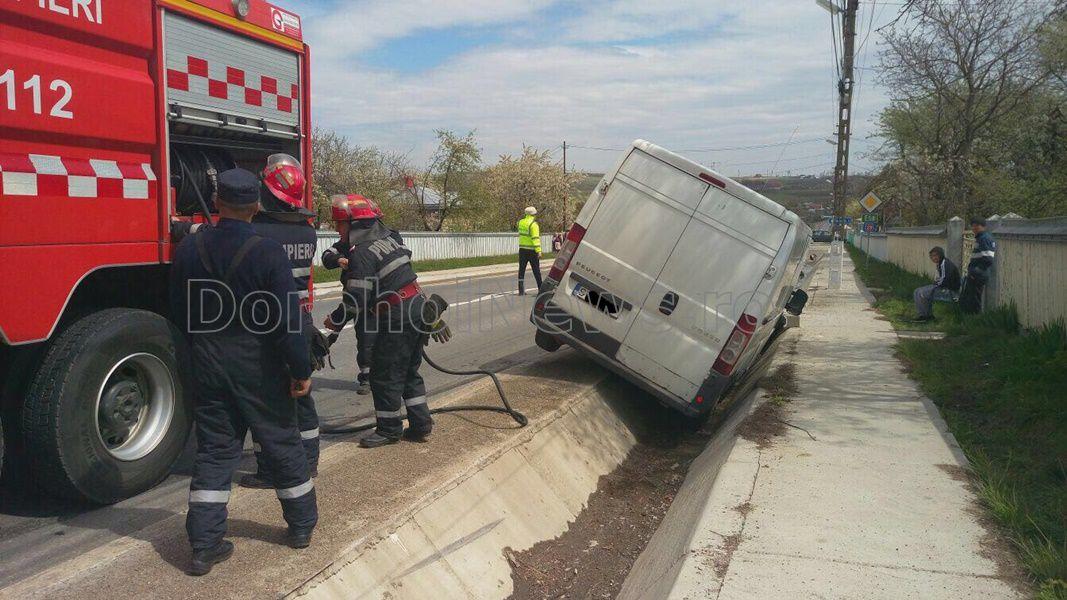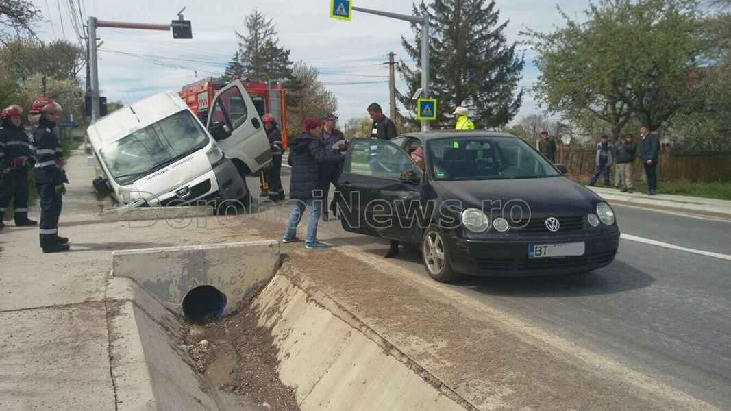 O şoferiţă aflată la volanul unui VW Polo a ieşit de pe drumul judeţean care duce la Mândreşti pe drumul european fără a acorda prioritate unei dube Peugeot care circula dinspre Suceava spre Botoşani, a acroşat uşor autoturismul VW iar duba a ajuns în şanţul de pe partea dreaptă a drumului şi s-a oprit într-un cap de pod, scrie stiri.botosani.ro. Conducătorul auto al autoutilitarei a fost rănit uşor la mână, fiind preluat de un echipaj de la Serviciul de Ambulanţă şi transportat la Unitatea de Primire a Urgenţelor pentru îngrijiri medicale.