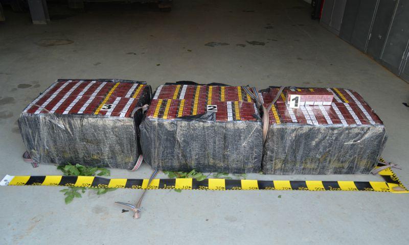 Poliţiştii de frontieră au reţinut doi cetăţeni români care au încercat să introducă în România 4.500 de pachete de ţigări de contrabandă, pe care intenționau să le comercializeze ilegal.