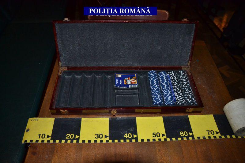 De asemenea, au fost ridicate în vederea continuării cercetărilor peste 1.200 de jetoane de poker, o masă de joc pentru poker precum şi sume de bani(lei şi euro).