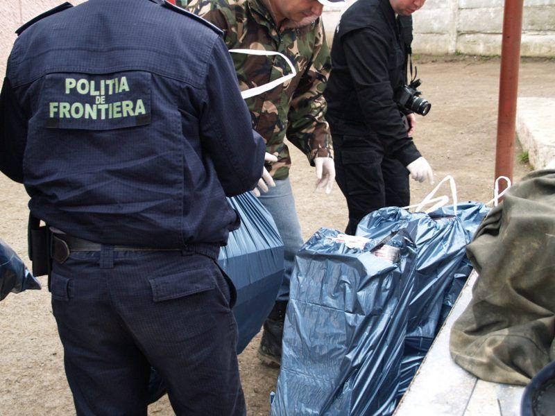 Astfel, în această dimineaţă, în jurul orelor 01.30, pe timpul executării unei misiuni specifice, politiştii de frontieră au observat, cu ajutorul aparaturii de termoviziune, în apropierea graniţei, pe teritoriul României, două persoane care transportau mai multe colete voluminoase. Persoanele în cauză au fost somate verbal de politiştii de frontieră, însă acestea au ignorat avertismentul şi au încercat să fugă, profitând de întuneric şi terenul împădurit. Poliţiştii de frontieră au fost nevoiţi să foloseasca armamentul din dotare, fiind trase două focuri de armă în plan vertical, reuşindu-se astfel reţinerea celor doi cetăţeni români, Constantin H, în vârstă de 41 ani, domiciliat în Botoşani şi Romică T., în vârstă de 50 ani, domiciliat în Darabani.