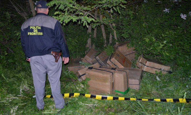 Poliţişti de frontieră din cadrul Sectorului Poliției de Frontieră Darabani, joi 3 mai, pe timpul unei acţiuni specifice pe linia combaterii contrabandei cu ţigări în zona de competenţă, au observat, la marginea unui drum din localitatea de frontieră Alba, judeţul Botoşani, zece colete, învelite cu bandă scotch.