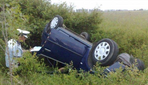 La un moment dat, pe fondul vitezei excesive, conducătorul autoturismului a pierdut controlul asupra direcţiei de deplasare şi s-a răsturnat pe cupolă, în şanţul de pe marginea drumului.