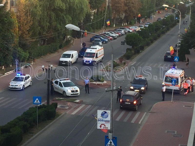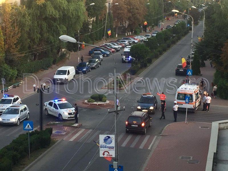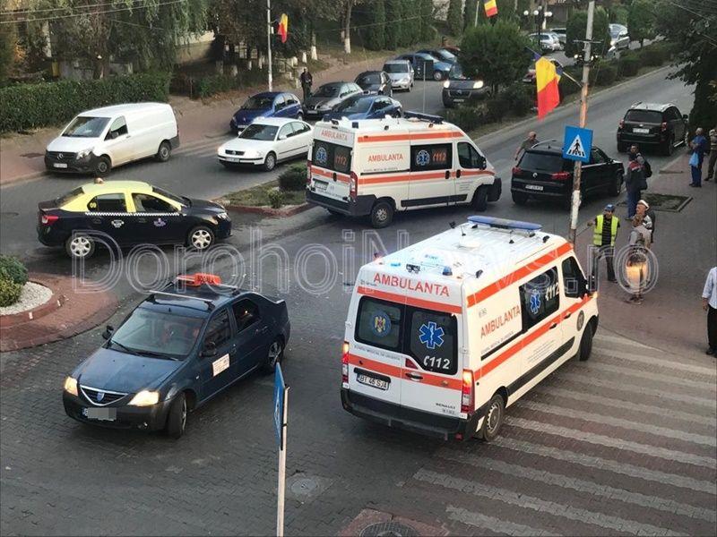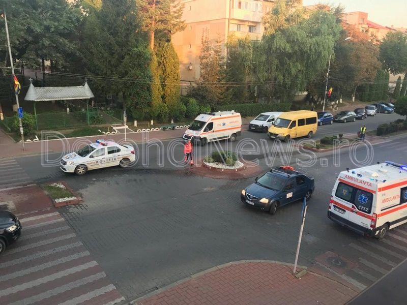 Un accident grav a avut loc, miercuri dimineață, pe Bulevardul Victoriei din municipiul Dorohoi. Un instructor auto și un elev de-al său, care se aflau într-un autoturism tip „Școala”, au fost răniți, după ce mașina acestora a fost lovită violent de un Volksvagen Golf.