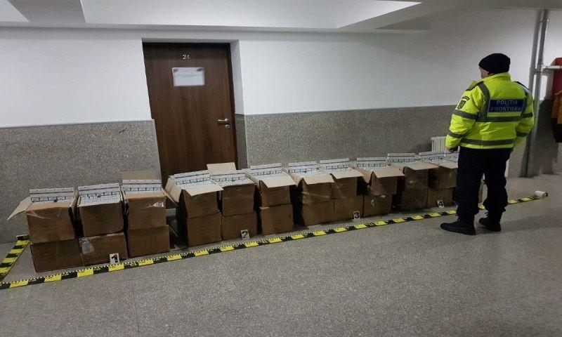 Polițiștii de frontieră din cadrul Sectorului Poliției de Frontieră Dorohoi au reţinut, în vederea confiscării, 12.000 de pachete cu ţigări, în valoare totală de peste 120.000 de lei, pe care patru cetăţeni ucrainieni au încercat să le introducă ilegal în România.